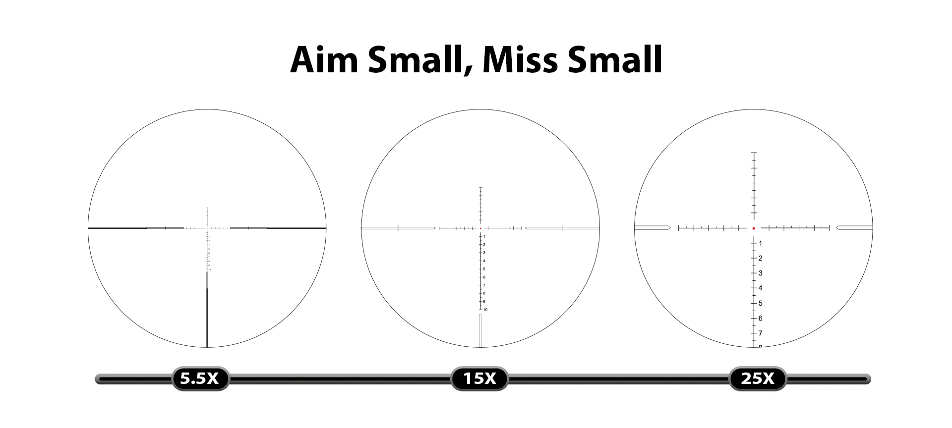 The first focal plane feature keeps the spacing between aim points on the reticle consistent throughout all of the magnification range.